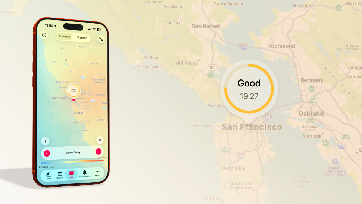 Never miss an incredible sunrise or sunset again. Set up reminders for your favorite time to shoot and check sunrise & sunset forecasts for the perfect light quality.